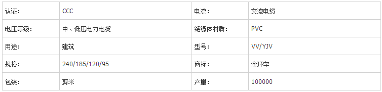 金環(huán)宇電纜 VV 、YJV電力電纜參數(shù)說明: